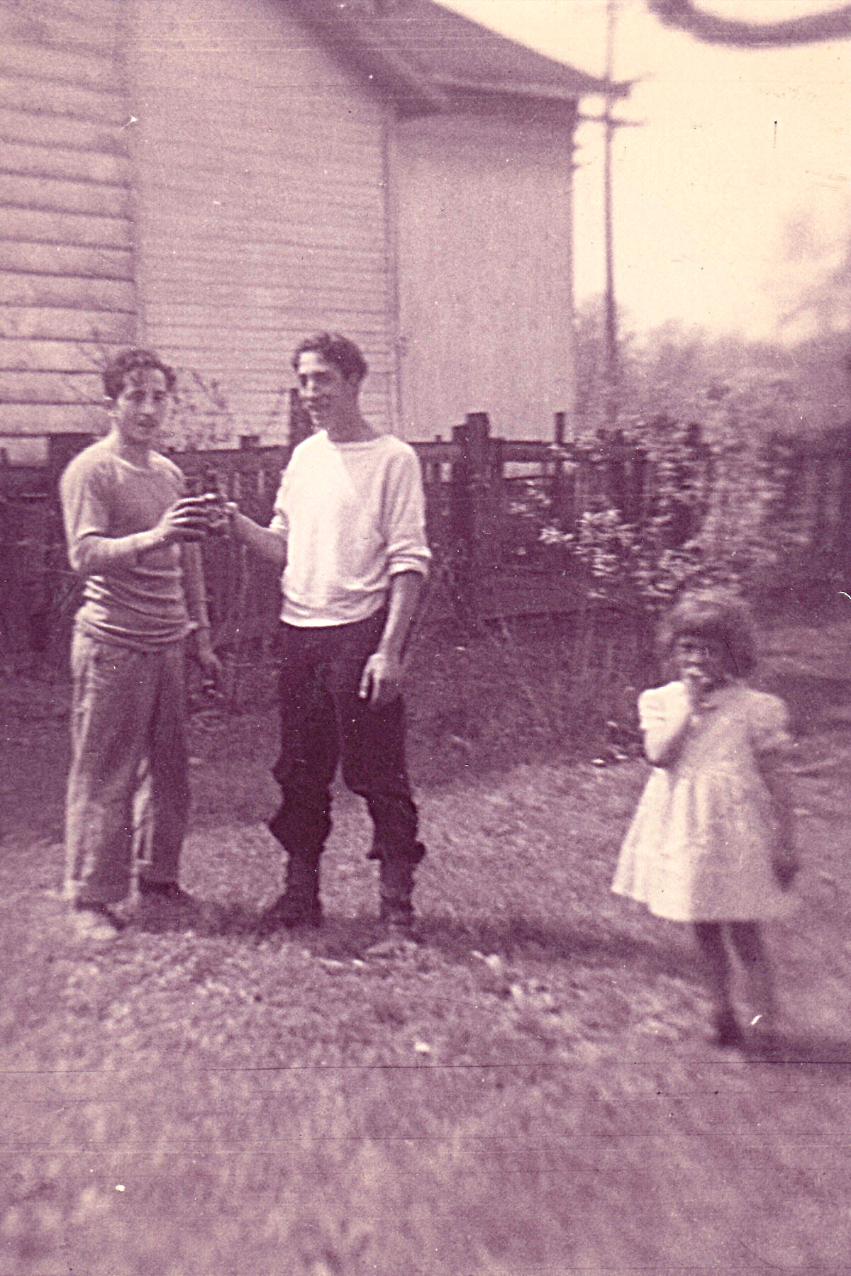 Humpie and George beside DeMarc home. c1950. |