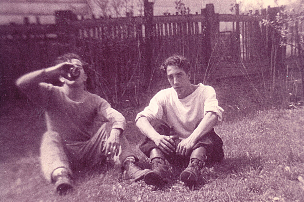 George, guzzling a beer, and Humpie. c1950. |