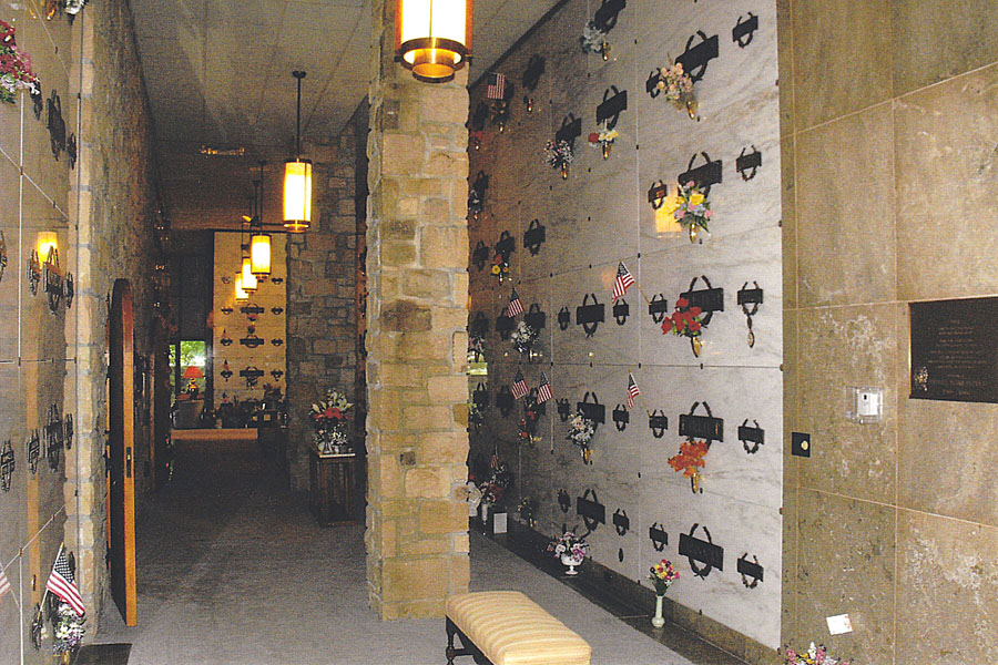 Inside the beautiful mausoleum. Andrew's niche third from bottom on right end. Sep 2009. |