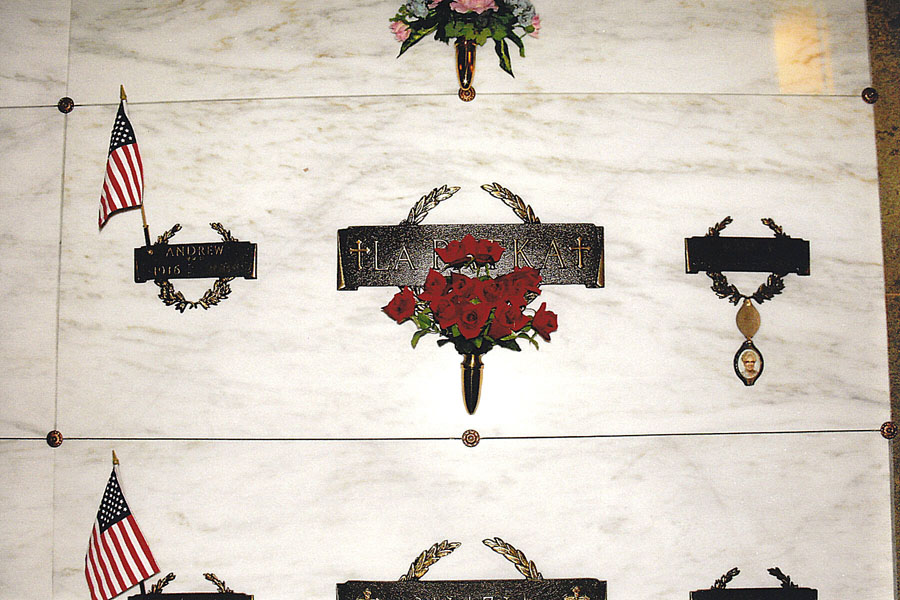 LaPatka niche or crypt. Andrew is buried alongside his first wife Mary DeAngelis. Sep 2009. |