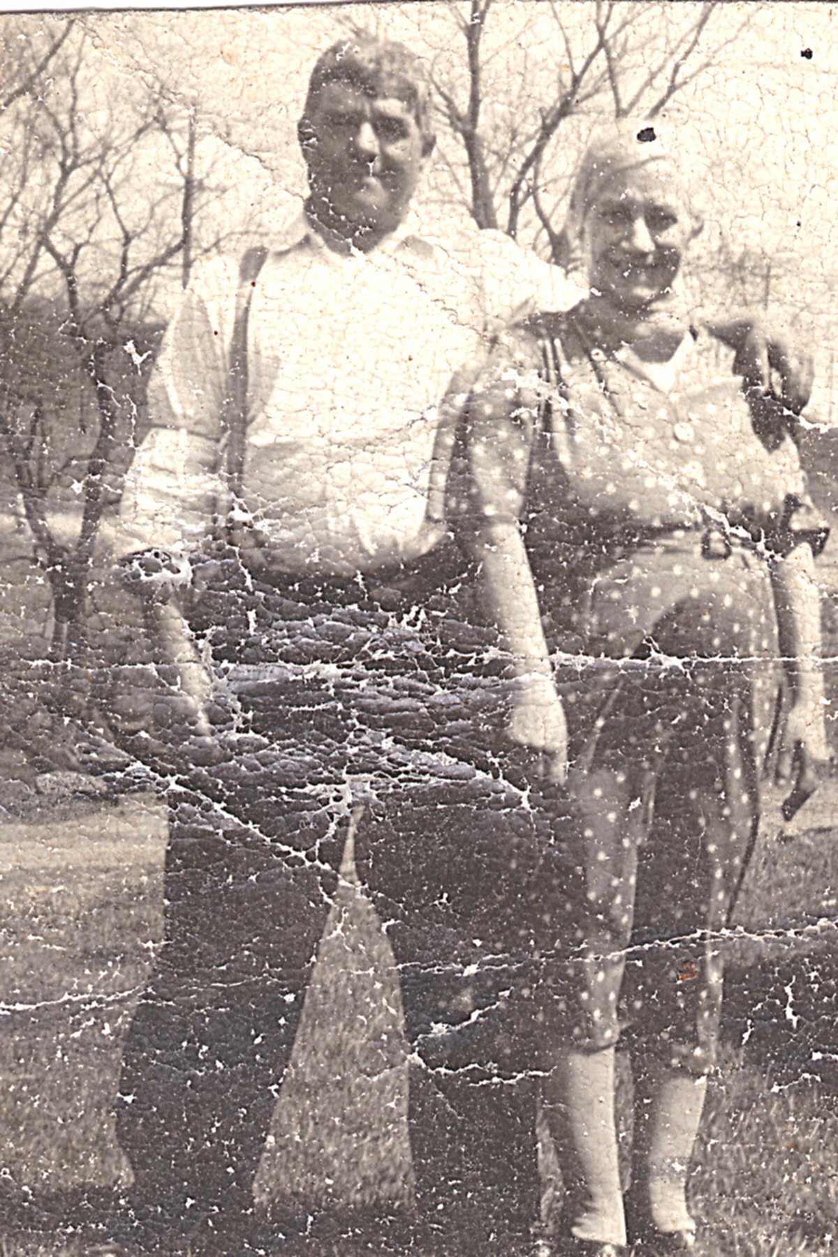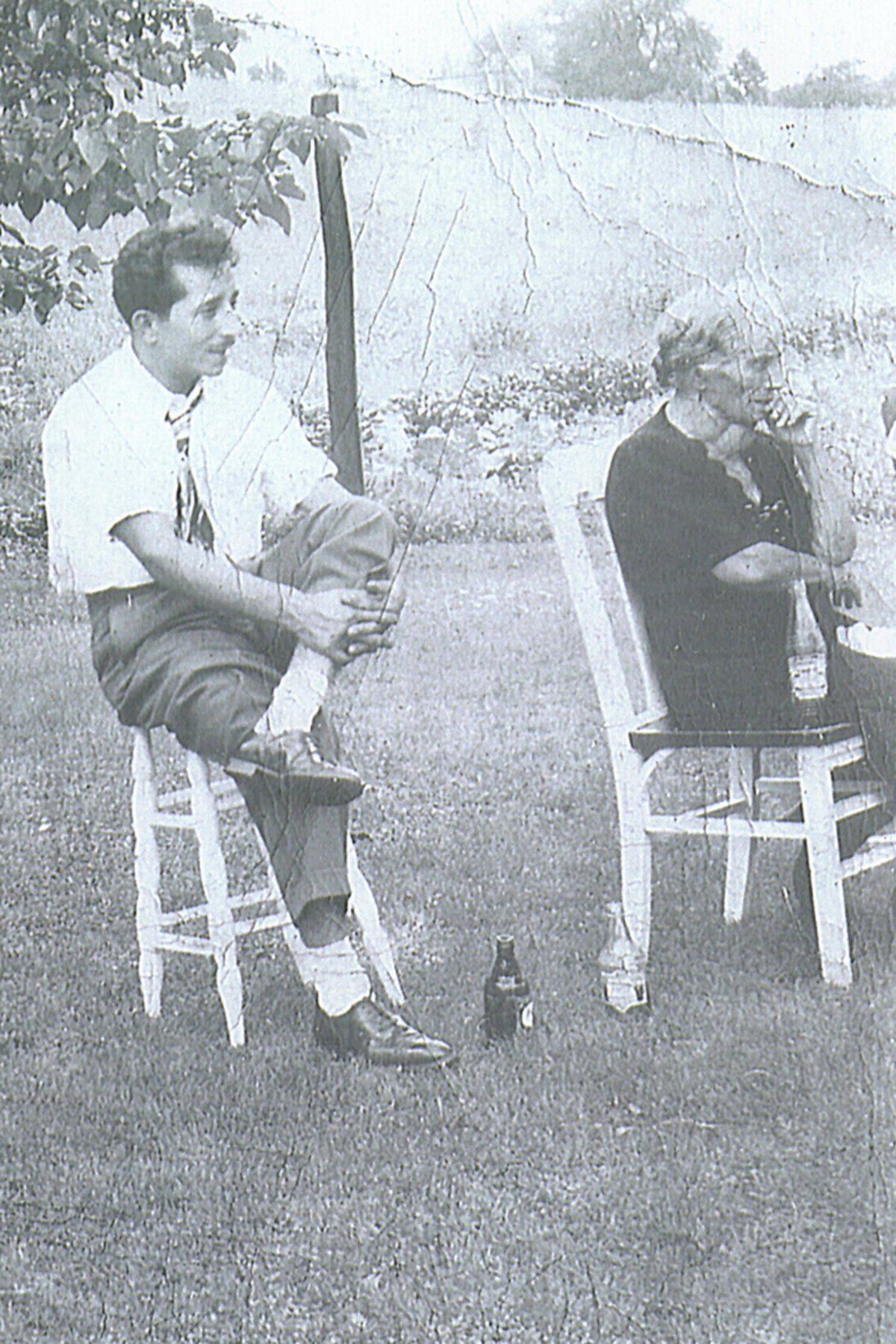 One of the best photos I have. Charles and Mary relaxing in front of the bake house. Taken sometime after Lou's death in August 1944 the toll of the last few years in clearly evident on both of them - particularly in Mary's weathered face. The knee of a man is visible to right so perhaps a small family gathering is taking place. Wish I could hear that conversation. c1945. |