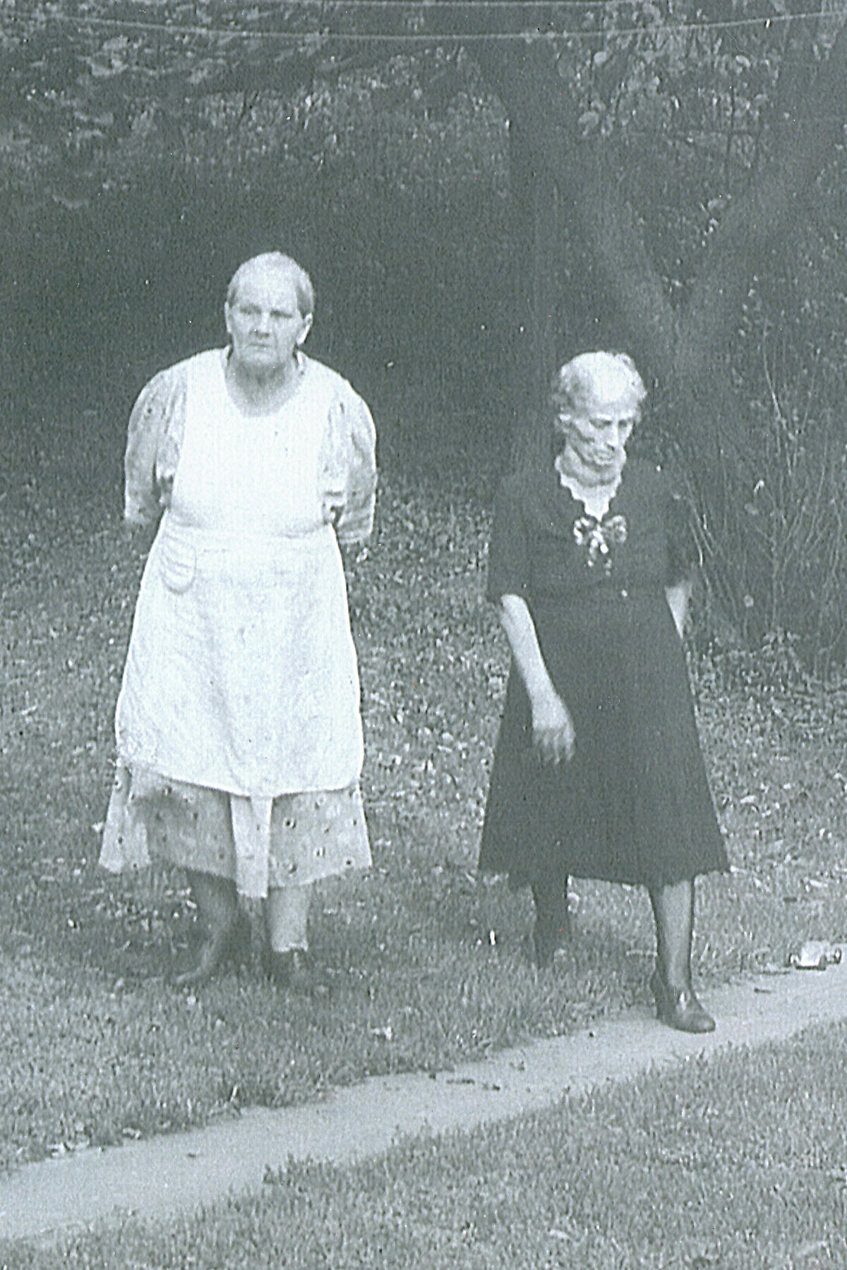 Mary in black dress with Mary LaPatka. LaPatka farm in Chewton, PA. c1948. |