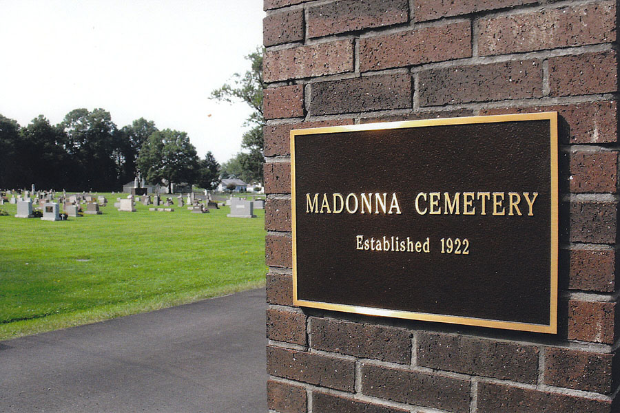 Entrance sign to Madonna Cemetery. New Castle, PA. Sep 2009. |