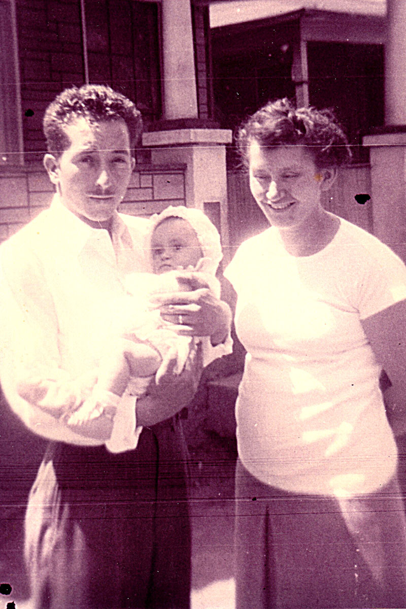 George, baby Carol Jean, Irene. West Pittsburg. 1948.