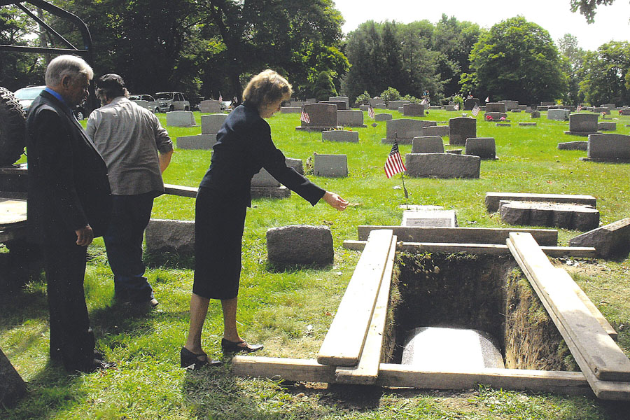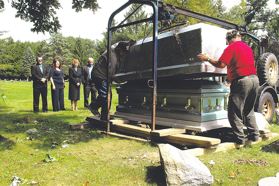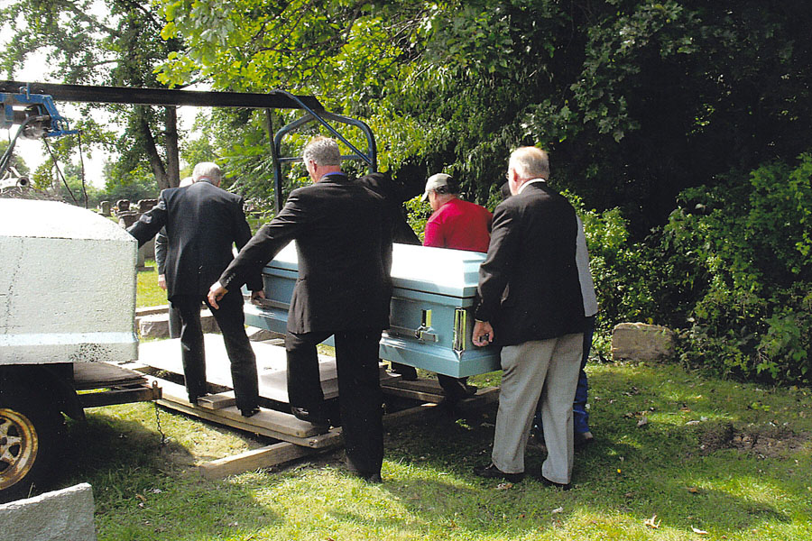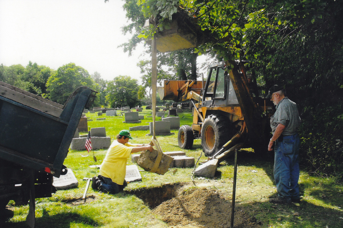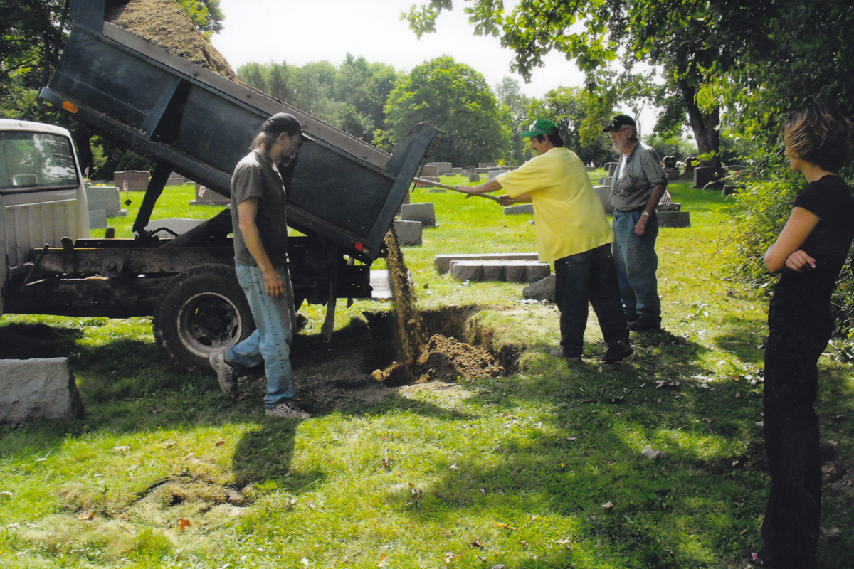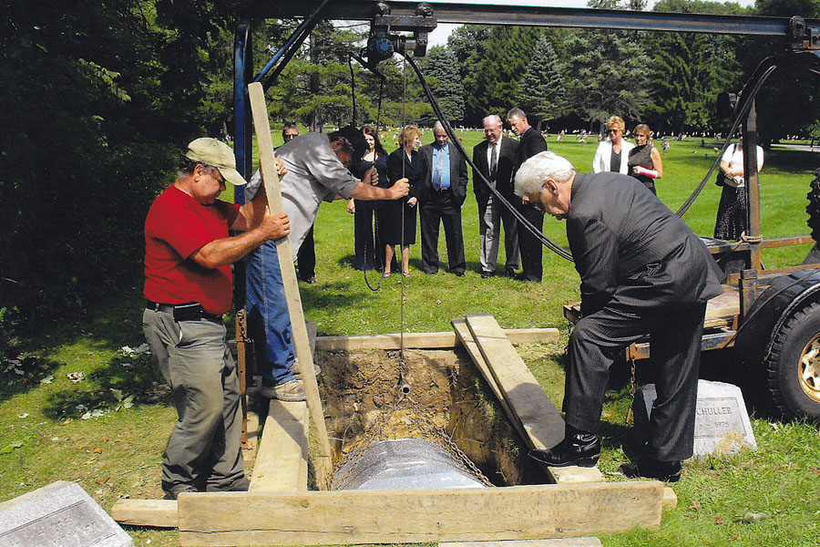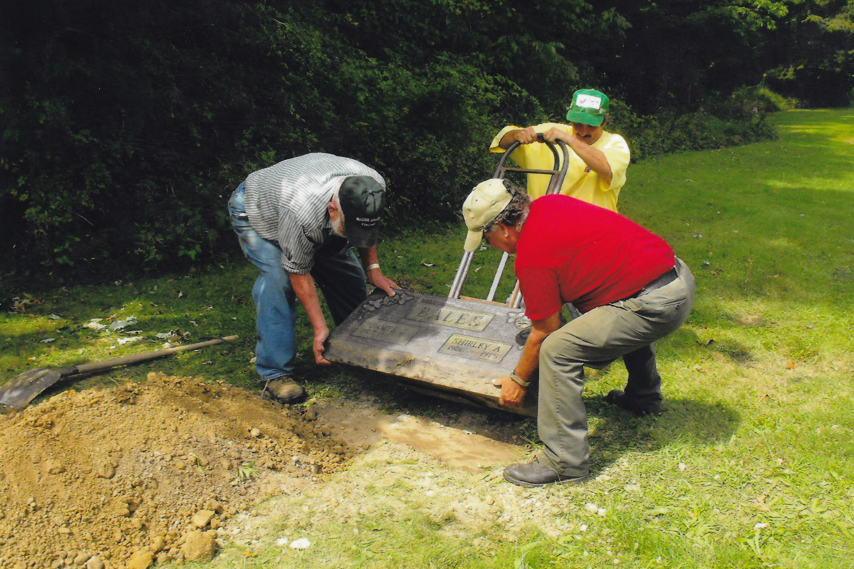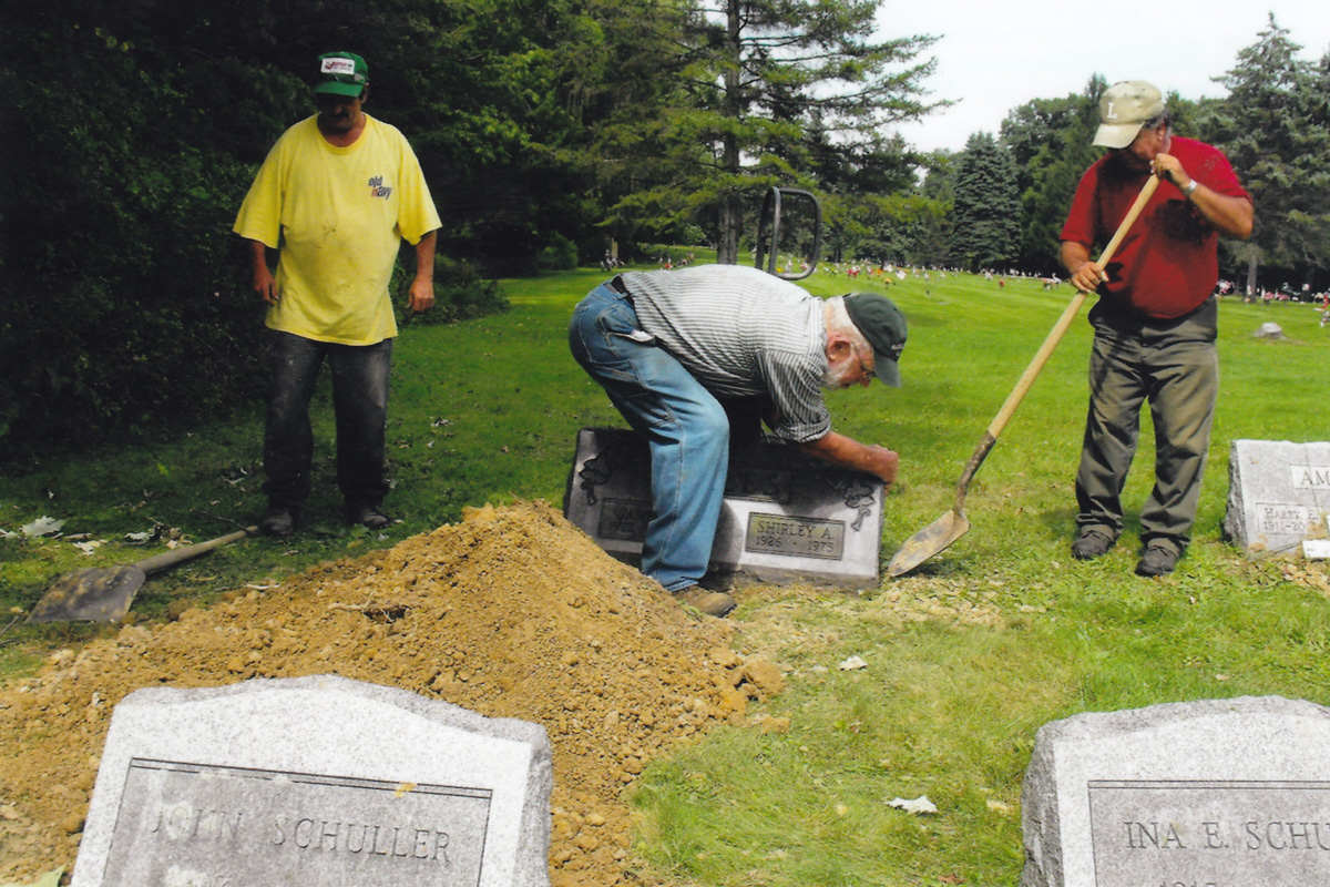 Jimmy Bales was buried at Oak Park Cemetery in New Castle, PA, at approximately 1:00pm on September 9, 2009. After the service at the funeral home it was announced that Jimmy would be taken to the cemetery, but no formal ceremony would take place. Most folks went on to the wake at Edwards Restaurant but a handful followed the hearse to the cemetery. After the casket was covered with the vault and lowered to its final resting place, Jimmy's daughter Terrie stood over and said a final goodbye. Everybody departed for the wake after this, but I stayed (with my cousin Carrie Gierlach) and watched the workers complete the job over the next hour. They also put all the displaced stones from the surrounding area back in place. It's not something you really get to see and I was fascinated. I also wanted to make sure Uncle Jimmy was taken care of properly. Here are some of the photos from that day.