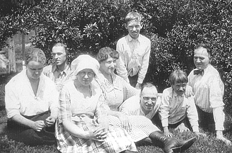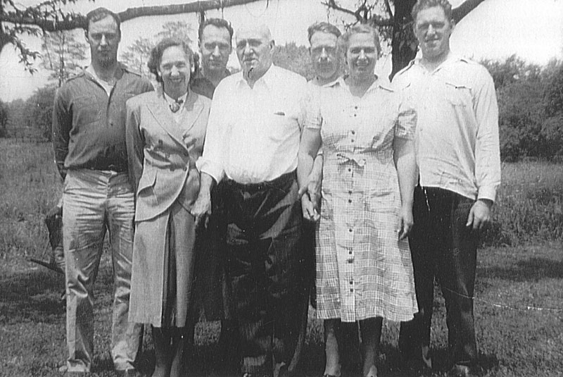 Jimmy, Lydia, Ray, father Jim, Merle, Pansy, Roy. Late 1940's. |
