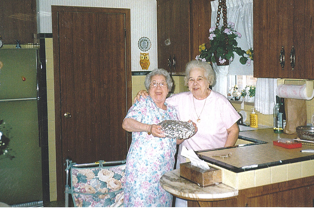 Josephine (on right) in her kitchen with her sister Madeline. |