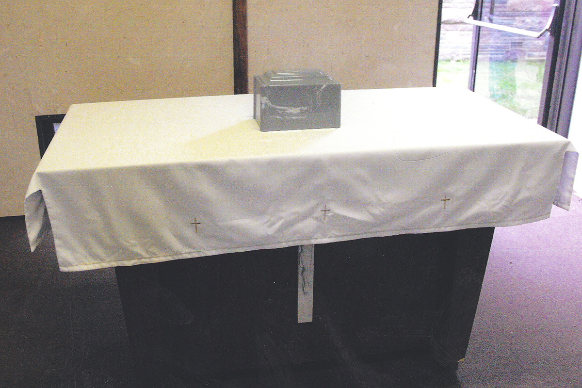 Josie's urn just after her memorial service at the cemetery. Nov 2009. |