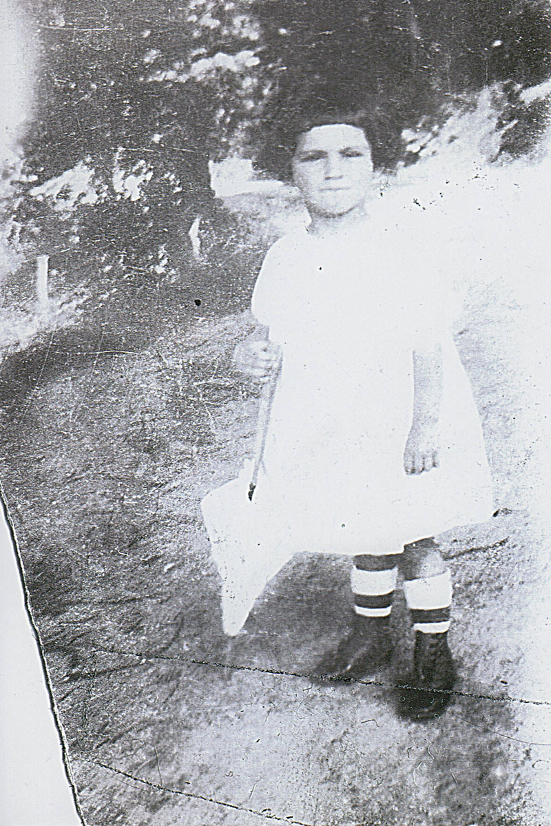 Kay with umbrella at age three. Chewton, PA. 1926. |