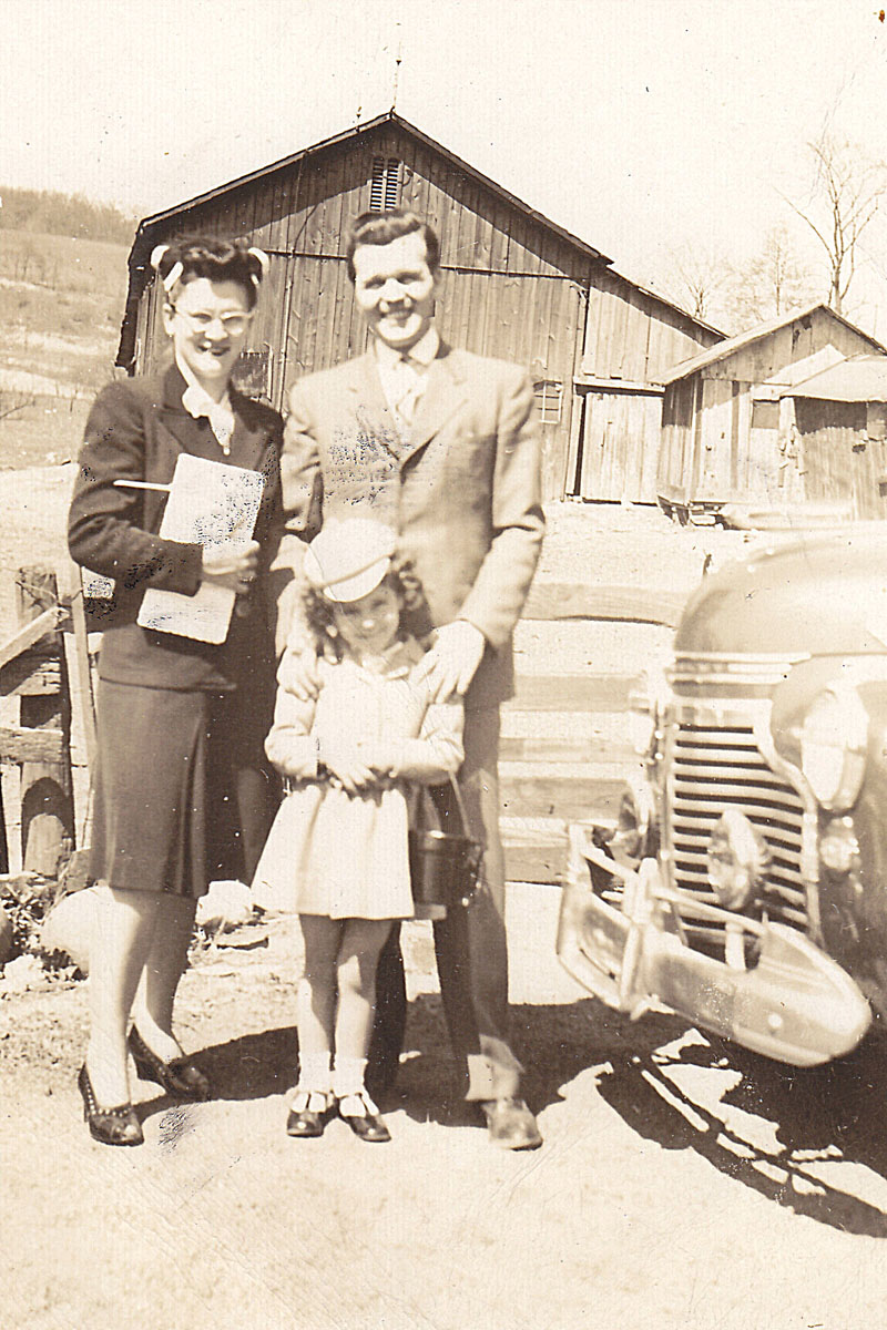 Kay and George with daughter Shirley. LaPatka farm. Chewton, PA. c1947. |