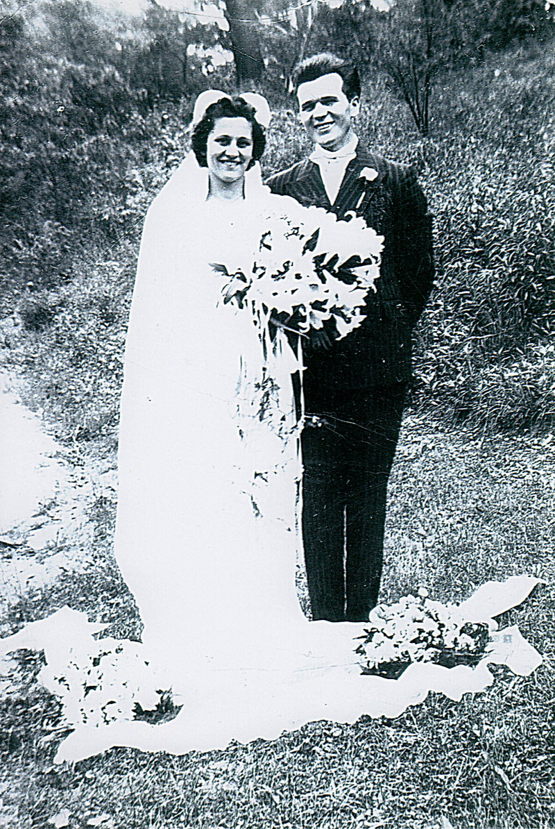 Kay and George Migut on their wedding day. LaPatka farm. Chewton, PA. Jun 8, 1940. |