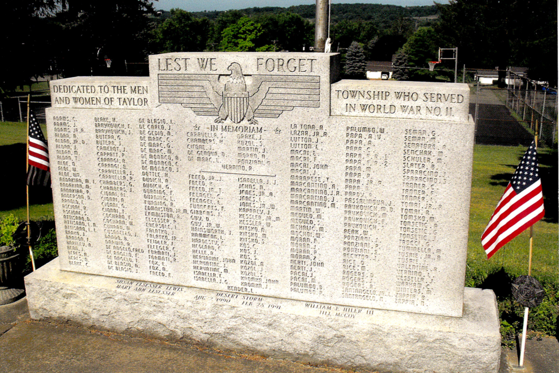 Memorial wall in West Pittsburg honoring the WW2 veterans from Taylor Township. Lou's name unfortuantely appears twice, once with his brother George, Mike, and Charles for serving and a second time for being killed in action. (Jun 2009) |
