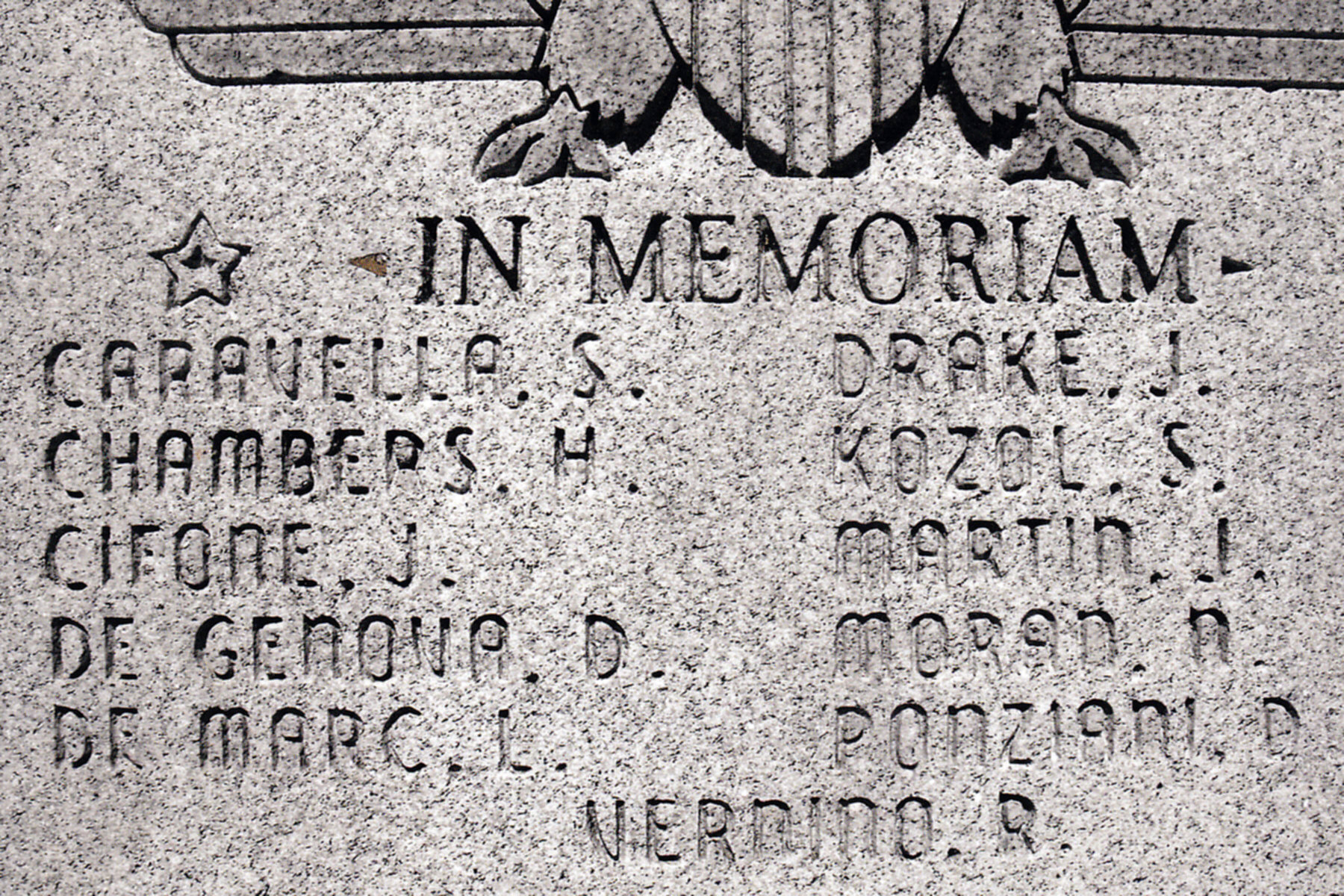 Closeup of the names of the eleven local men, including Lou, who gave their lives for their country back in 1941-1945. (Jun 2009) |