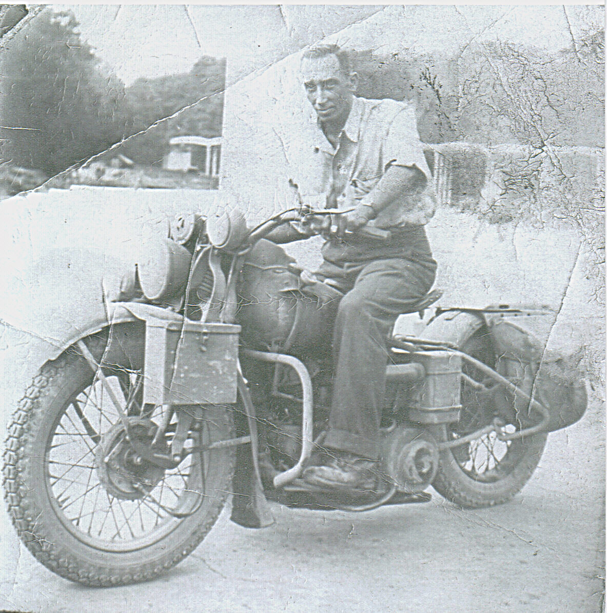 Lou on a motorcycle possibly belonging to his brother Mike. |