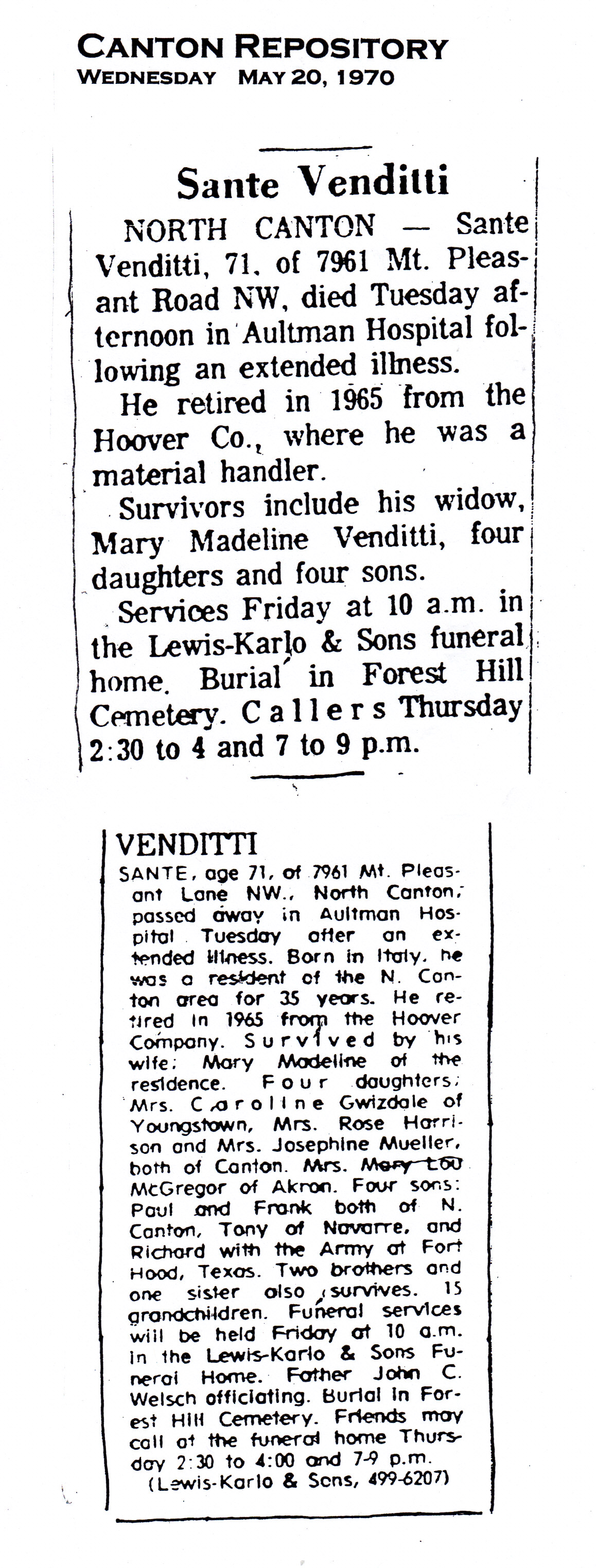 > Sante's Obituary