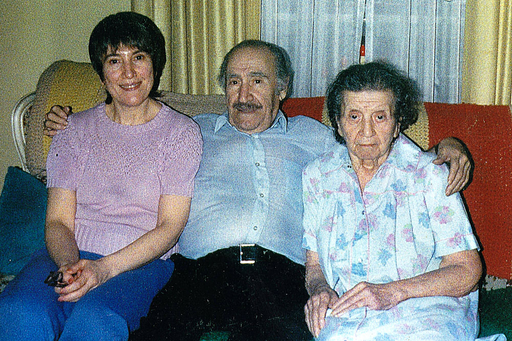 Carol Grace, Robert, and Mary. Photo possibly taken on Mary's 87th birthday. She died about a year later. Wampum, PA. Jun 1994. |