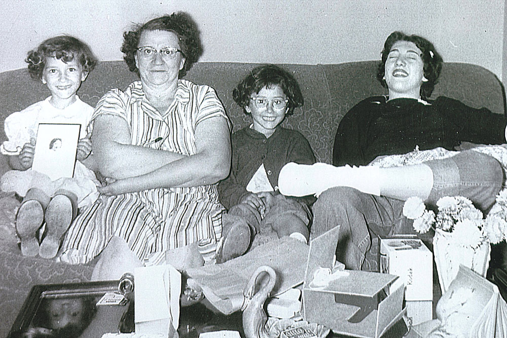 Carol Jean DeMarc, Mary, MaryAnn DeMarc, and Mary's daughter Carol Grace Aiello. Wampum, PA. Jun 1954. |