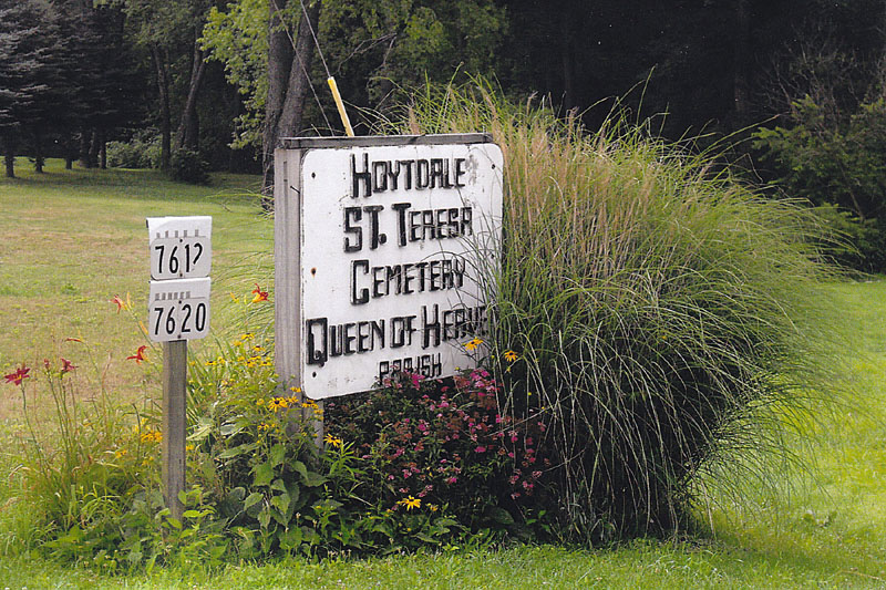 Entrance sign for Hoytdale/St. Teresa's Cemetery. Near Koppel, PA. Jul 2009. |
