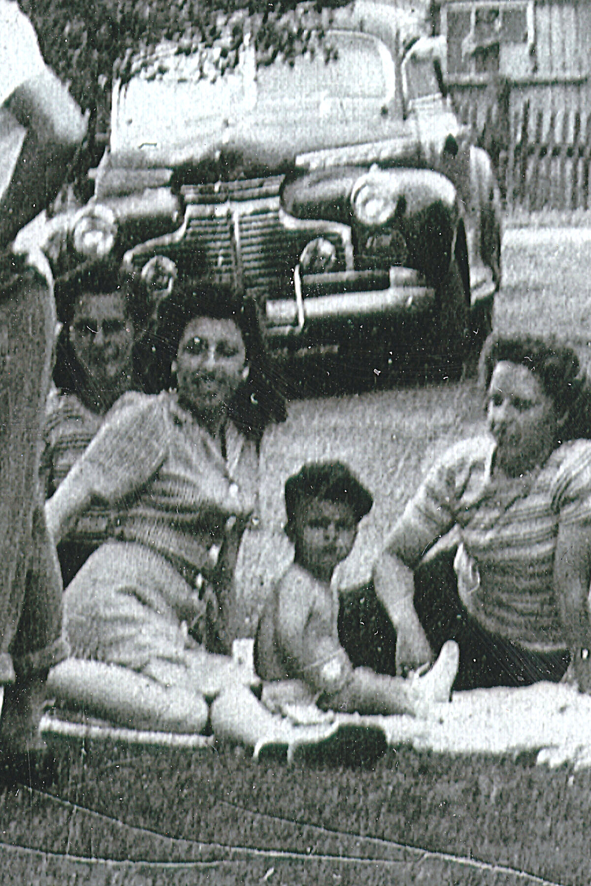 Pauline in back with Mary (DeAngelis) LaPatka, Ronnie Teck, and Stella (Borsuk) LaPatka. 1947. |