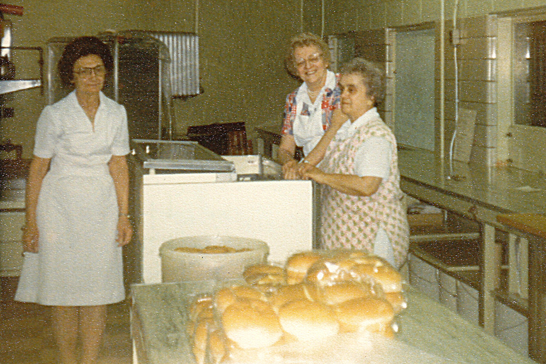 The "Kitchen Krew" - Liz, Alberta, and Rose - from St. Joseph's Catholic School in Canton. Rose worked in this cafeteria for twenty-one years. Rose sent me this photo and she wrote on the back: "The little fat one is me." May 1980. |