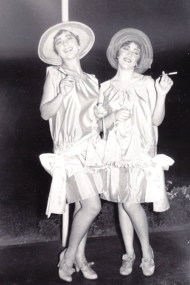 Shirley (on left) and Carol Grace Aiello dressed as 1920's "flappers." They took part in a parade. Mary Aiello made these dresses. Nov 1956. |