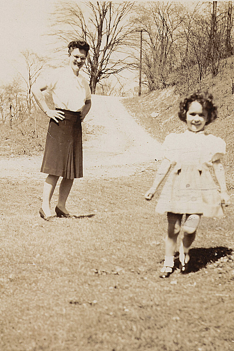 Shirley with her mother Kay. You can clearly see the dirt road that leads down to the LaPatka farm. Chewton, PA. c1945. |