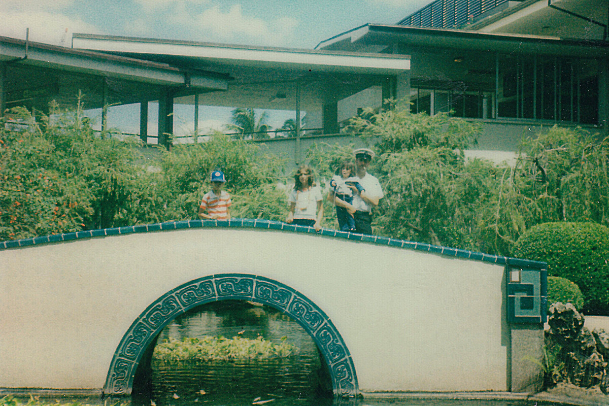 In June 1978, we departed Pittsburgh, Pennsylvania, en route to our new home on the distant island of Guam in the western Pacific. It is quite a long journey to reach Guam and took us about twenty-four hours. Along the way we had a layover at Travis Air Force Base in Northern California and then a brief stop at Honolulu International Airport in Hawaii. At the airport in Hawaii we took some great photos in a pagoda and on a bridge located in the Dr. Sun Yat-sen garden. I can still remember standing on the bridge with my dad. I returned to this exact spot thirty-one years later in March 2009 and took some similar photos. |