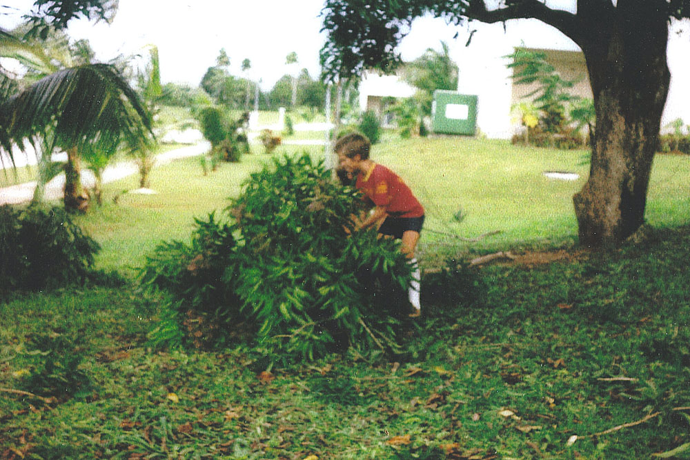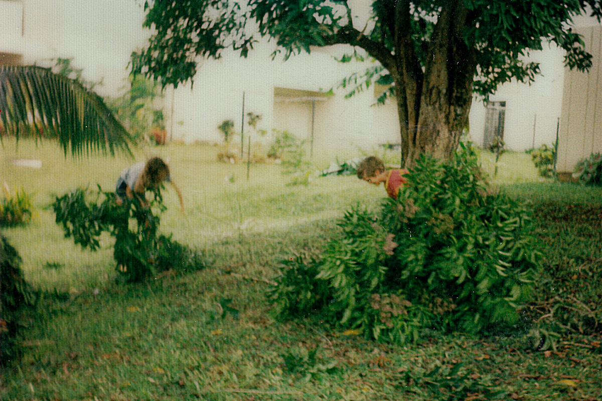 By my count a total of sixty-two typhoons (known as hurricanes on the East Coast) raged through the western Pacific during our four years on Guam. A few of those achieved "Super Typhoon" status, meaning their winds exceeded 150 mph. The typhoon season generally ran from June-December and about four months after we arrived on Guam we braced for the northward moving Category 2 Typhoon Phyllis in mid-October 1978. Phyllis swung to the west but right on her heels approached Category 5 Super Typhoon Rita from the east. She formed near the Marshall Islands on Octber 15 and while moving westward soon achieved Super Typhoon status. Her winds tipped the scales at 180mph! As predicted by experts, she took a track to the south of Guam and passed by on October 24. Despite avoiding a direct hit small island still endured quite a beating. We were without power for a few days and many of the roads were impassable. Unfortunately, Rita continued west and ripped across Luzon in the Philippines killing over 400 people. We were lucky with Rita. Two years before we arrived Super Typhoon Pamela devastated Guam in May 1976. In the years after we departed Super Typhoon Omar, in August 1992, and Super Typhoon Paka, in December 1997, wrought similar havoc. Paka had gusts recorded at 236mph! Miraculously, no one was killed on Guam by Paka, but the island experienced widespread destruction and suffered a complete loss of power. Paka was so powerful that her name has since been retired. Below are a few photos taken in the days after Rita made her presence known. The large tree on the side of our house took a beating and we are cleaning up the mess. |