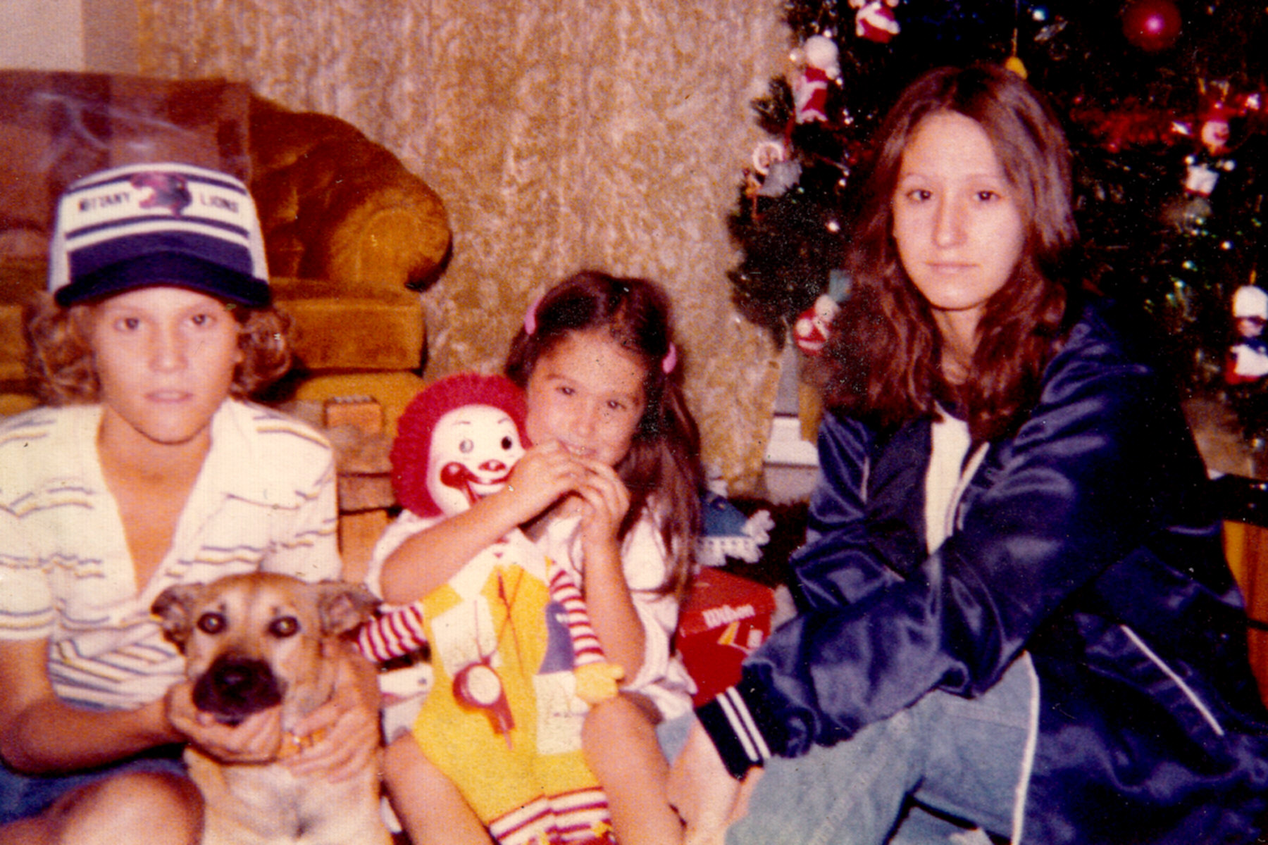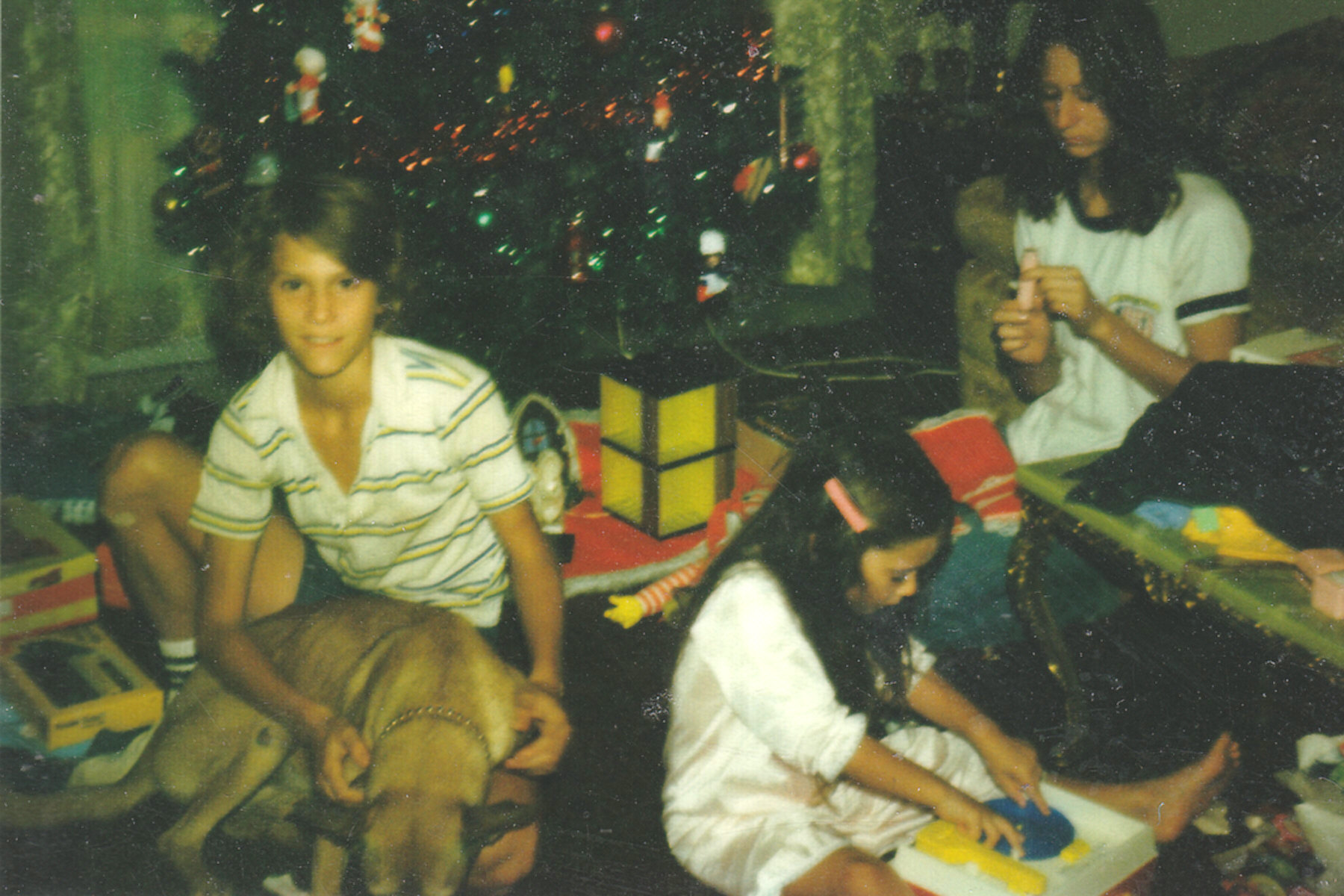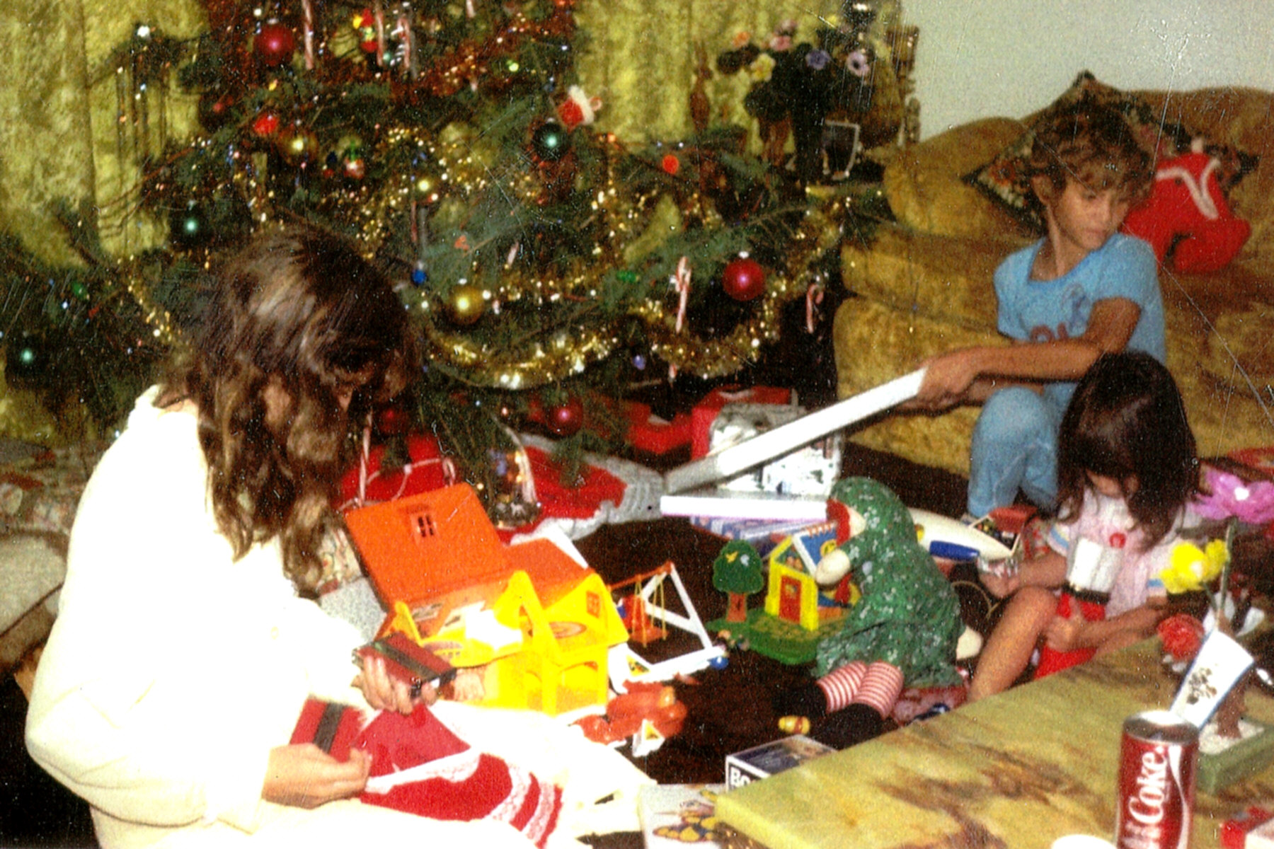 Jeffrey, Carol, Alison, and our dad. Xmas 1979.
