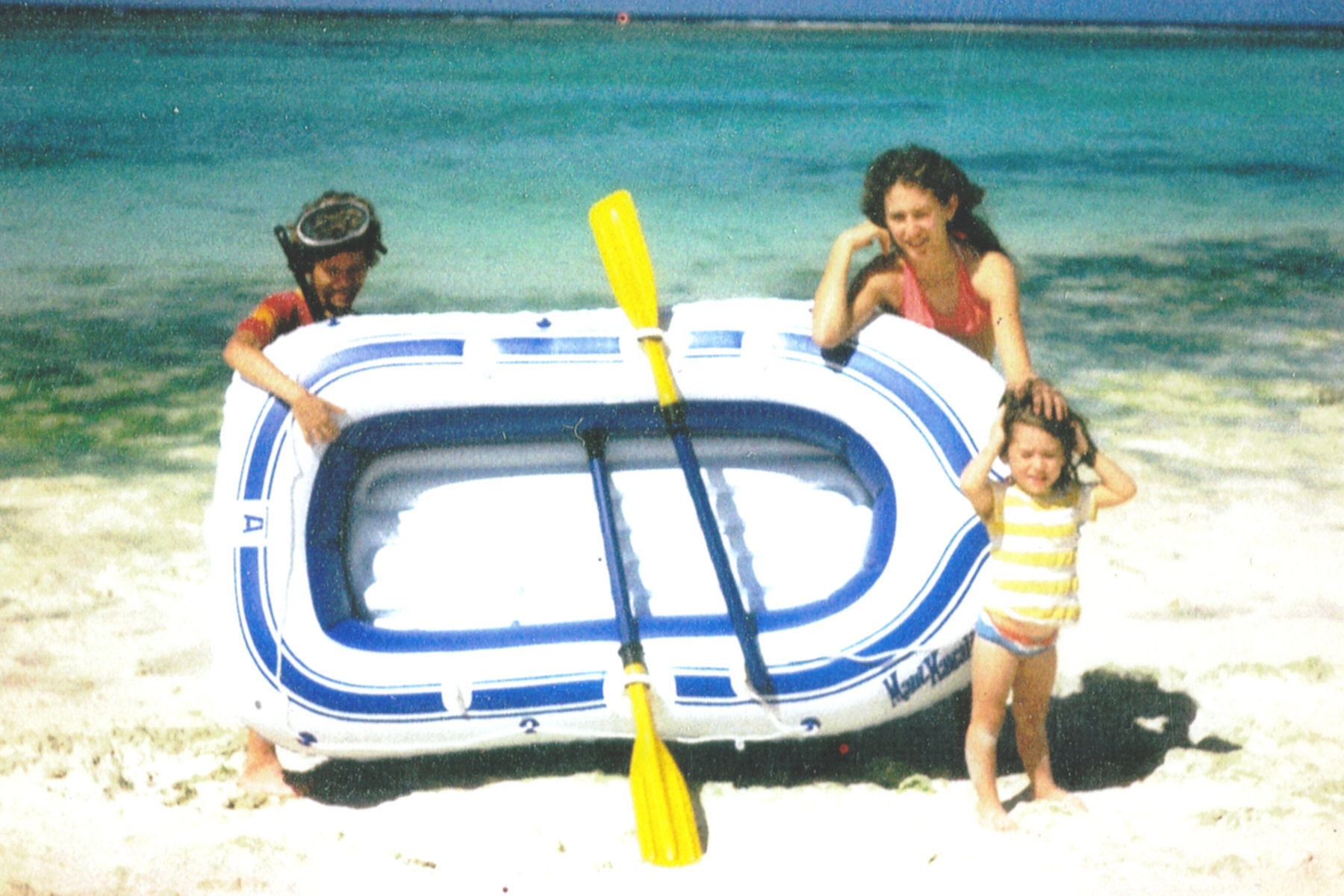 Christmas afternoon on Tumon Beach with our new rubber raft! Xmas 1978.