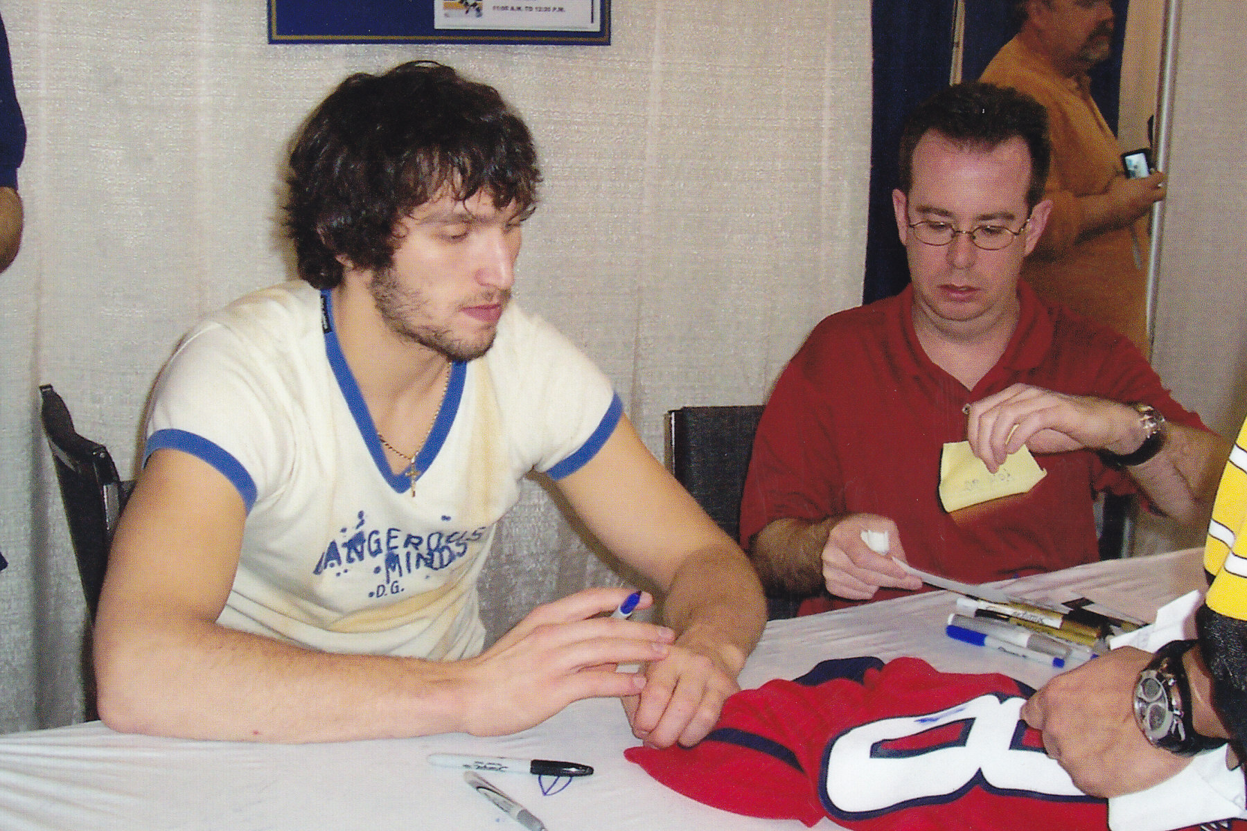 Alex "Ovie" Ovechkin of the Capitals prepares to sign a jersey for me.
