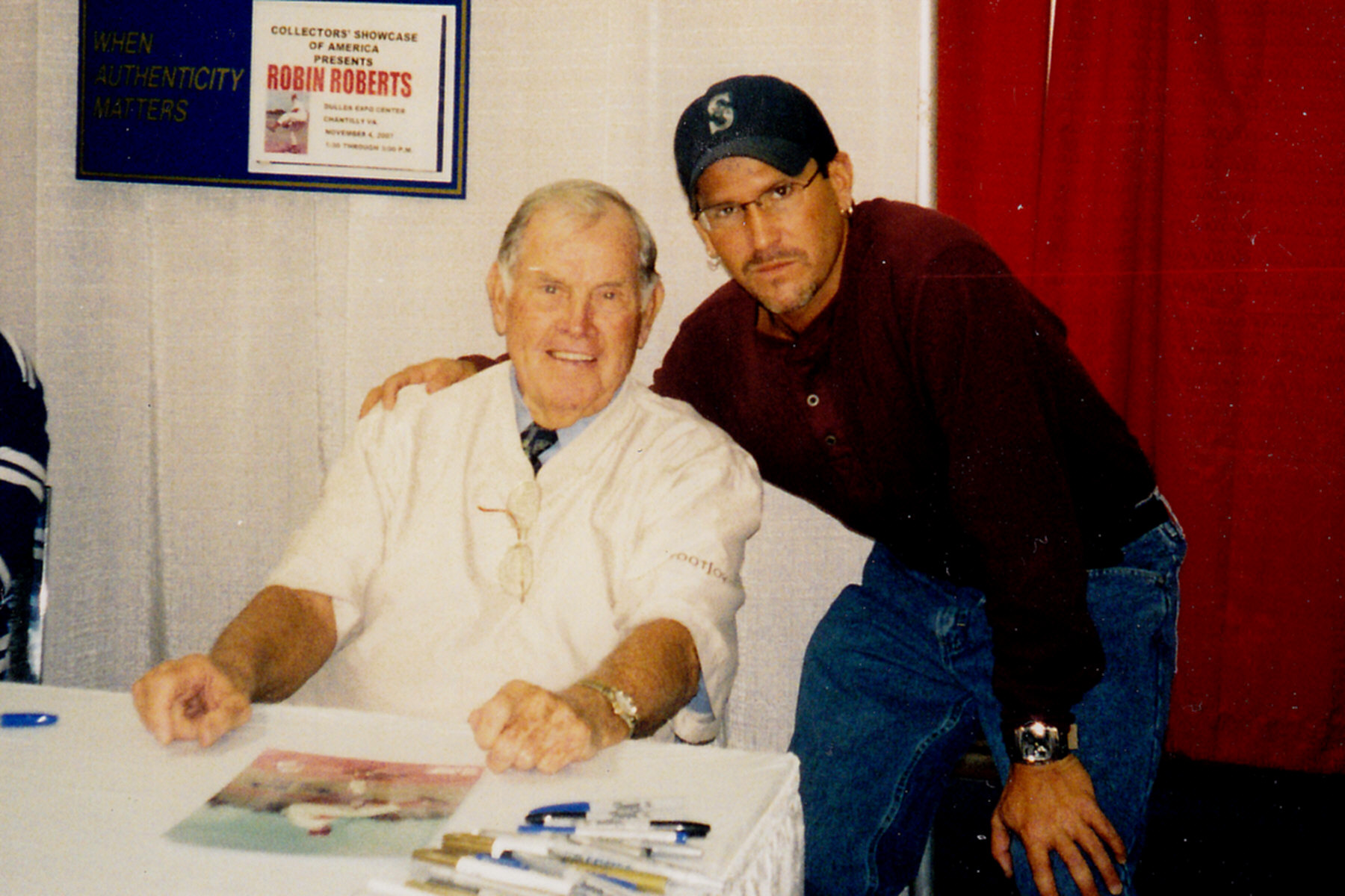 With legendary Phillies' hurler and former Whiz Kid Robin Roberts, who won 286 games in his career. He was a super nice guy. He passed away in May 2010 as the age of 83.