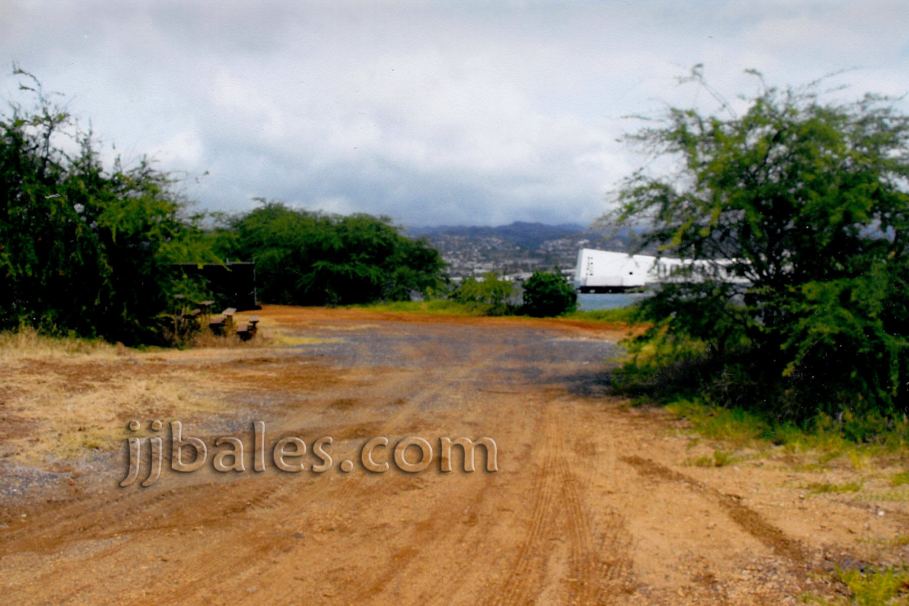 Before too long you start to see glimpses of the Arizona Memorial through the trees.