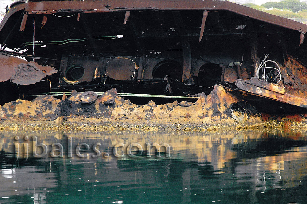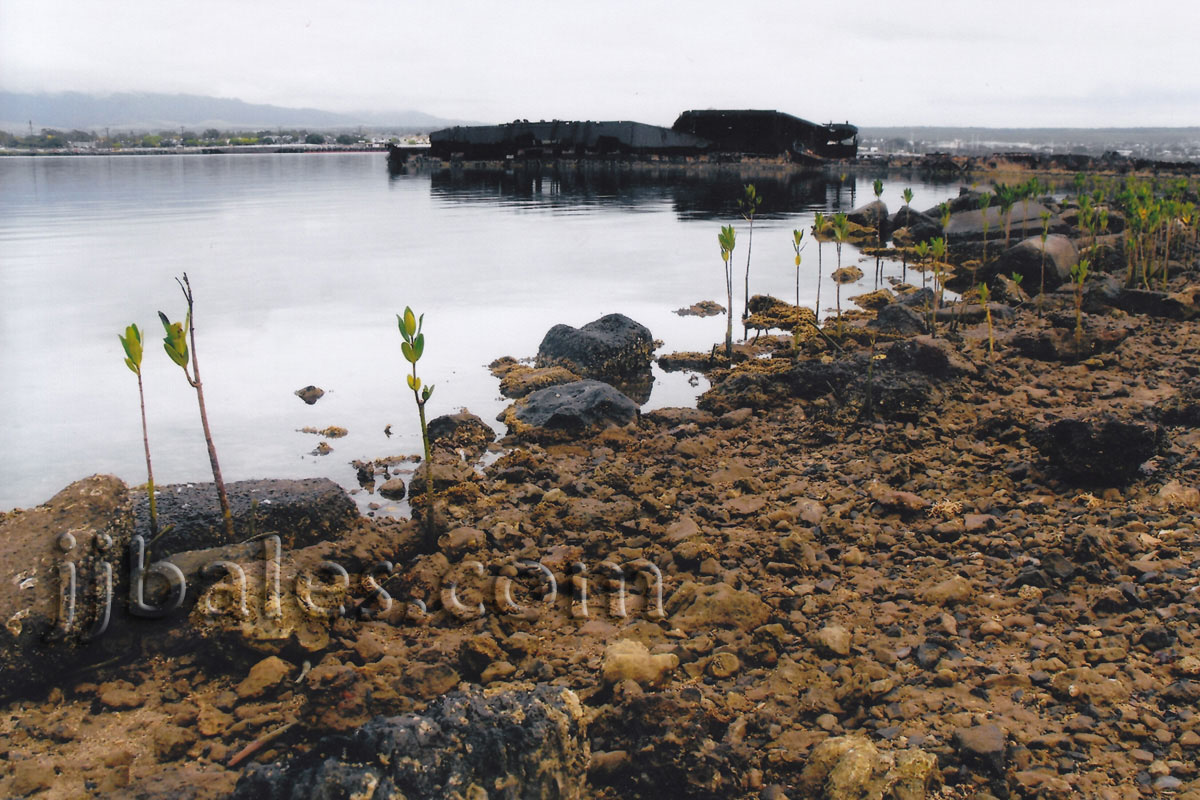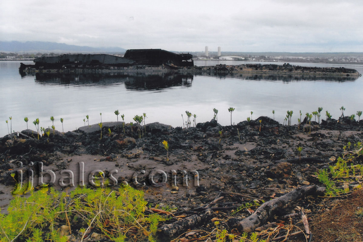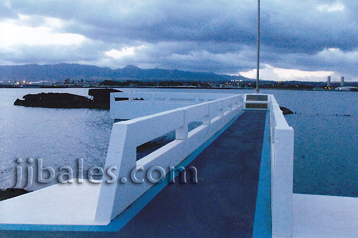 The story of the wreck of the Utah is a favorite of mine and a place I always sought to visit. The Utah, originally commissioned in 1911 as a battleship and later serving as a stripped-down naval target vessel, was torpedoed and capsized on the northern end of Ford Island on December 7, 1941. A determined effort to upright and salvage the vintage ship ended in failure. The rusting hulk of the vessel remains lying on her port side and is the final resting place of approximately fifty-eight men of her crew. A small memorial, that includes a platform that overlooks the Utah, was dedicated at the site on May 27, 1972. The wreck is located on the more peaceful northern side of Ford Island and is quite a solemn (if not downright eeire) place to visit at night. I took these photos at dusk on March 4 and during the afternoon of March 6, 2009. It is a little known fact that the cremated remains of an infant girl are also entombed aboard the ship. USN Chief Petty Officer Albert Wagner, who survived the sinking, fathered twin girls (both were born premature) in August 1937 while stationed in the Philippines. One of the girls, Nancy L. Wagner, died two days after being born and was cremated. Wagner kept her remains hoping to have an official burial at sea, as he had done for another deceased daughter in 1936. Unfortunately, the attack on Pearl Harbor came before that could happen at his new command aboard the Utah. An official funeral service for the entombed infant girl was held at the site on December 7, 2003, and included Mary (Wagner) Kreigh, the sixty-six-year-old surviving twin sister of Baby Nancy.